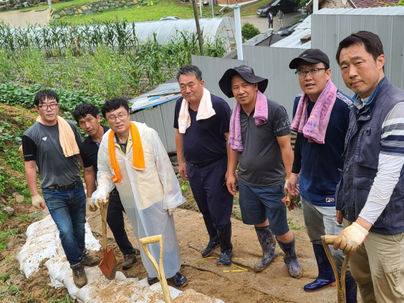 특히, 지난 5일에는 권영준 봉화군의회 의장·박형수 국회의원(영주, 영양, 봉화, 울진), 정상대 명호면장, 봉화군청 직원 7명 등 총 10여 명이 삼동리 김영순(68세)씨 댁을 방문, 집 뒤안으로 무너져 쓸려 내려온 토사를 제거하고 배수로 정비에 구슬땀을 흘렸다.