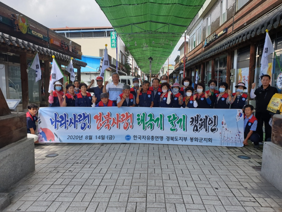 한국자유총연맹 봉화군지회(회장 윤영균)은 13일 오후 1시 봉화읍 구시장 일대에서 제75주년 광복절을 기념해 '나라사랑 봉화사랑 태극기 달기운동'을 전개했다.