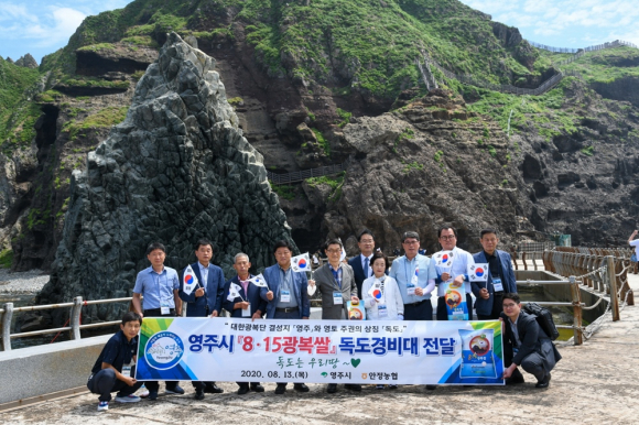 영주시는 다가오는 광복절을 기념하고자 13일 독도를 방문해 ‘8·15 광복쌀’ 독도경비대 전달 행사를 개최했다.