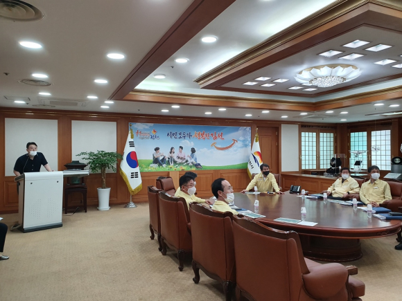 김천시(시장 김충섭)는 지난 24일 시청 접견실에서 김충섭 시장과 국소장 등 10여명이 참석한 가운데 ‘김천시 축제개발 연구용역 중간보고회’를 개최했다.
