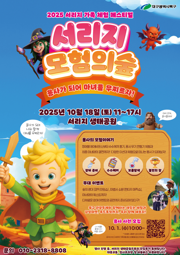 대구 북구가 오는 18일 동호동 서리지 생태공원 일원에서 '2025 서리지 가족 체험 페스티벌 – 서리지, 모험의 숲'을 개최한다.