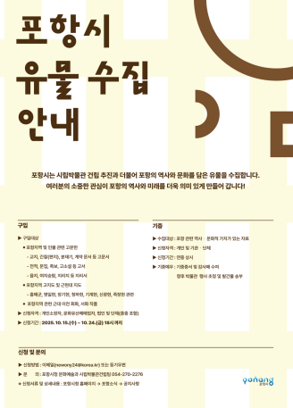 포항시 관계자는 “이번 유물 수집은 시립박물관 건립을 위한 첫걸음이자 시민의 기록과 기억을 담는 중요한 계기가 될 것”이라며 “많은 시민의 적극 참여를 부탁드린다”고 말했다.