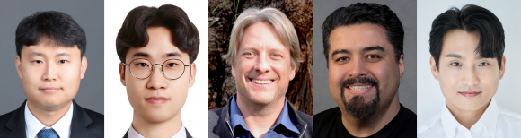 | ↑↑ 왼쪽부터 DGIST(박상현, 김수필), 스탠퍼드대학교(킬리안 폴, 에흐산 아델리), 고려대학교(진경환) 공동연구팀. DGIST 제공 |
