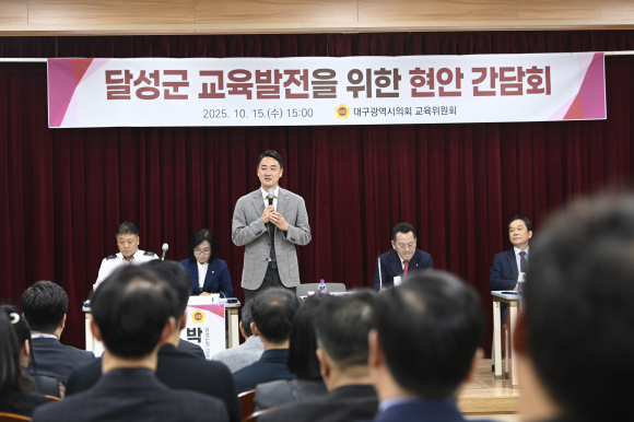 대구 달성군이 15일 대실초 시청각실에서 열린 대구 시의회 주최 ‘지역 교육현안 해결 간담회’에 참석해 주민과 학교 현장의 목소리를 듣고, 관련 기관과 해법을 논의했다.