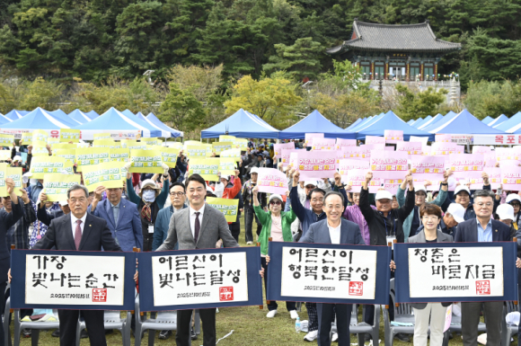 대구 달성군이 15일 송해공원 기세축구장에서 열린 '2025년 제7회 달성군 실버한마음 큰잔치'에 9개 읍·면 어르신 등 2000여 명이 참석해 성황을 이뤘다. 경로의 달을 맞아 열린 이번 행사는 어르신에게 문화향유와 소통의 기회를 제공하고, 건강하고 활기찬 노후 생활환경을 조성하기 위해 마련됐다.