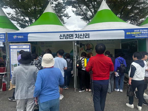 | ↑↑ 2025 경상북도 문화마을이야기 박람회에서 신녕면 치산리 마을 홍보관을 구경하는 관람객들<영천시 제공> |