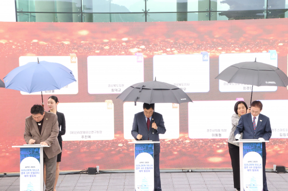 행사에는 주낙영 경주시장, 이철우 경북 도지사, 김장주 (재)경주스마트미디어센터장 등 30여 명이 참석했다.