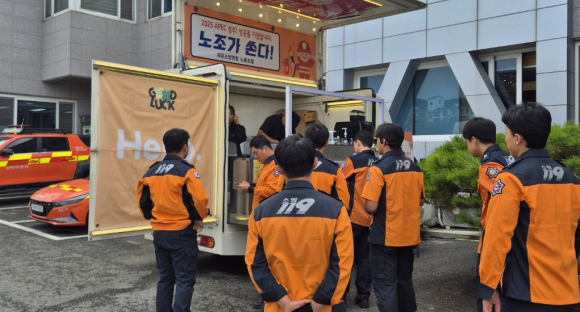 경북 소방노조 중 가장 적은 소방노조인 자유소방연합 노조가 지난 20일, 경주소방서 청사 전정에 경주소방서 직원과 APEC 소방안전기획단 직원, 경주소방서 의용소방대원을 위로·격려하기 위해 1일 커피차(200잔) 제공했다.