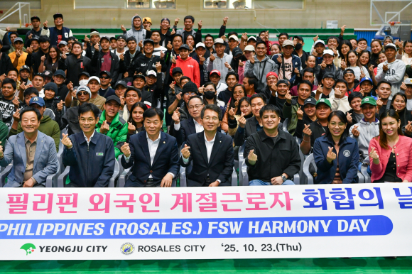 영주시가 23일, 동양대 실내체육관에서 '2025년 필리핀 로살레스시 외국인 계절근로자 화합의 날' 행사를 개최했다.