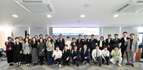 | ↑↑ 김은영 달성군의회 의장과 의원 등이 ‘2025년 부패방지 및 이해충돌방지 교육’을 실시하고 단체기념촬영을 하고 있다. 달성군의회 제공 |