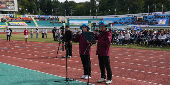 | ↑↑ 제43회 영천시민체육대회 개회식에서 읍면동 선수대표 선서 모습<영천시 제공> |