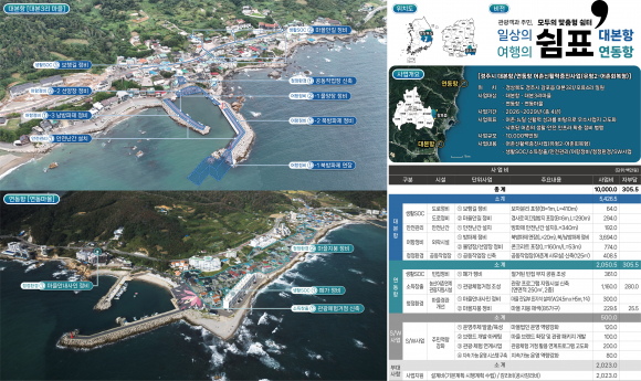 주요 사업 내용은 △대본항의 방파제 및 물양장‧선양장 정비, 도로 및 안전관리시설 개선, 공동작업장 신축 △연동항의 관광체험거점 조성, 빈집정비, 마을경관개선 등이다.