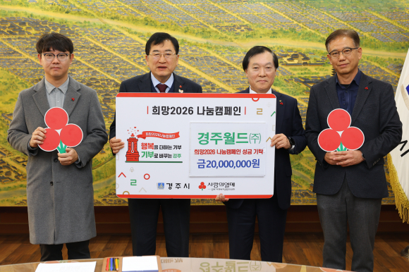 경주월드(주)가 지난 18일 시청을 방문해 희망2026나눔캠페인 성금 2000만 원을 전달했다