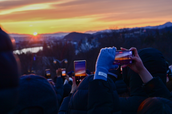 | ↑↑ 대구 동구청이 1일 동촌유원지 해맞이 공원에서 ‘동구 병오년 해맞이 행사’에서 구민 모두 함께 카운트 다운을 외치며, 새해 일출을 지켜보고 있다. 동구 제공 |
