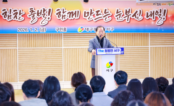 대구 서구가 지난 2일 2026년 병오년 시무식을 열고 새해 업무를 시작했다. 시무식에는 그간 추진해 온 도시 인프라 구축과 정주 환경 개선 사업의 성과를 공유하고, 구청장이 신년 덕담과 함께 올해 구정 운영 방향과 비전을 제시했다.