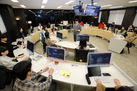 | ↑↑ 계명대 의용공학과 학생들이 인공지능(AI) 메디컬 실습실에서 의료 영상 분석, 생체 신호 처리, 딥리닝 모델 구현 등 특화 수업을 하고 있다. 계명대 제공 |