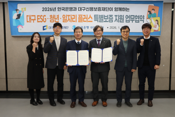 대구신용보증재단(이사장 박진우, 대구신보)이 지역경제 성장과 중소기업·소상공인의 경영 안정을 도모하기 위해 한국은행 대구경북본부(본부장 김주현, 한국은행)와 '대구 ESG·청년·일자리 특별보증'을 시행한다.