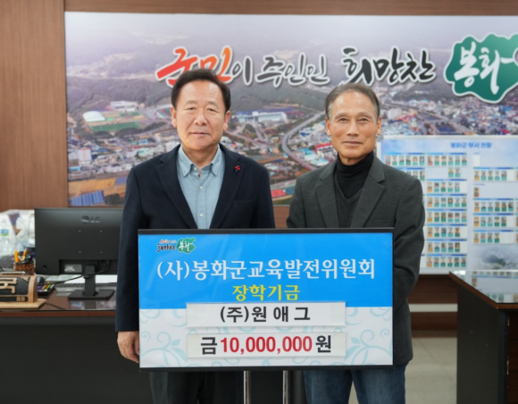 봉화 ㈜원애그, 장학금 1천만원 기탁