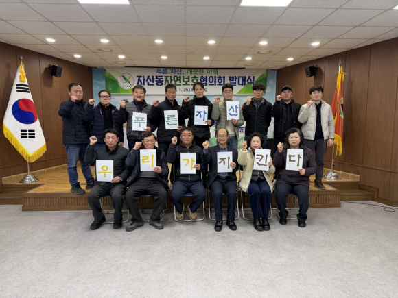 김천 자산 행정복지센터가 지난 28일 2층 강당에서 ‘자산동 자연보호협의회’ 발대식을 개최했다.