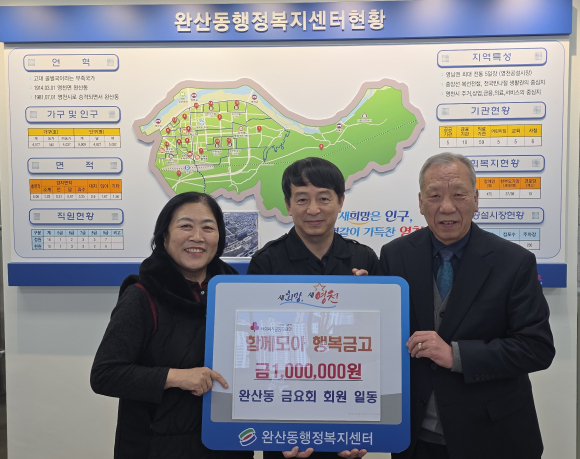 한무현 완산동장은 “금요회원님의 지속적 관심과 따뜻한 나눔에 깊이 감사드린다”며, “소중한 마음이 어려운 이웃에게 잘 전달될 수 있도록 최선을 다하겠다”고 말했다.