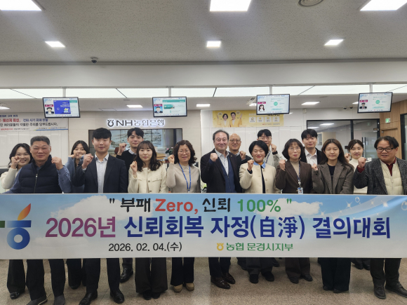농협 문경시지부가 지난 4일 전 직원이 참석한 가운데 신뢰회복 자정(自淨) 결의대회를 개최하고, 청렴한 조직문화 정착과 신뢰 회복을 위한 실천 의지를 다졌다.