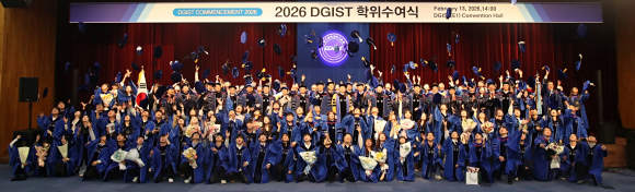 DGIST가 지난 13일 오후 대학본부 컨벤션홀에서 '2026년도 전기 학위수여식'을 개최하고 박사 59명, 석사 103명, 학사 131명 등 293명 졸업생에게 학위를 수여했다.
