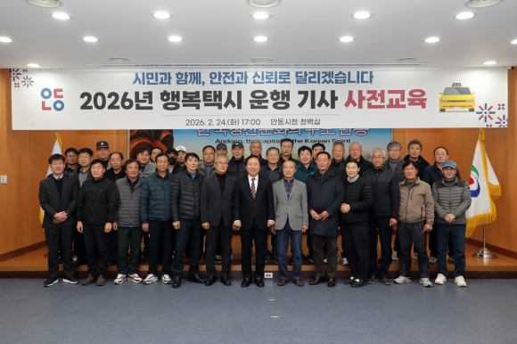 안동시가 24일 웅부관 청백실에서 2026년 행복택시 운행기사 사전교육을 실시했다.