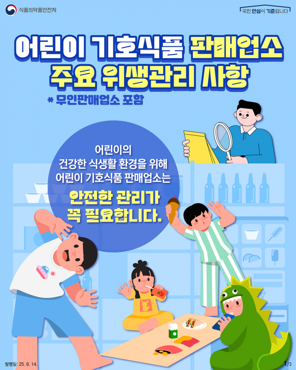 주요 점검 내용은 ▲소비기한 경과 제품 진열·보관 여부 ▲조리시설 및 판매시설 위생관리 상태 ▲식재료 및 냉동·냉장식품 보관기준 준수 여부 ▲고열량·저영양식품 및 고카페인 식품 판매 여부 ▲식품위생법령 준수 여부 등이다.