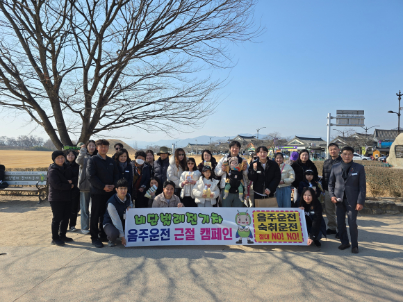 경주시설관리공단 관광휴양팀이 지난 20일 경주 동부사적지 입구에서 비단벌레전기자동차 탑승객 및 동부사적지를 방문한 관광객을 대상으로 음주운전 근절 다짐 캠페인을 실시했다.