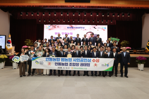안동농협이 농협중앙회가 주관하는 ‘2026년 1분기 범농협 사회공헌상’을 수상하며 전국 농·축협 가운데 사회공헌 분야 우수 사무소로 선정됐다.