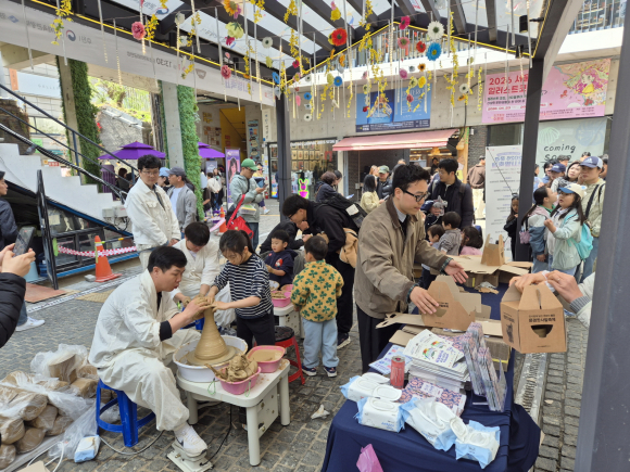 특히, 현장에 마련된 전기물레 3대를 활용한 찻사발 빚기 체험은 가족 단위 관광객과 외국인에게 단연 인기였다. 체험 대기 줄이 길게 늘어설 만큼 인산인해를 이루며, 남녀노소 국적을 불문하고 문경 도자기의 매력에 푹 빠지는 기회를 제공했다.