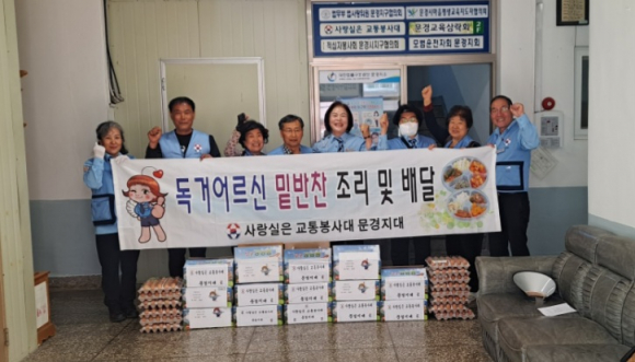사랑실은 교통봉사대 문경지대가 지난 13일 관내 독거어르신 등 사랑의 손길이 필요한 18세대에 밑반찬과 바나나 등 간식을 전달하고 안부를 묻는 시간을 가지며 위로와 격려를 했다.
