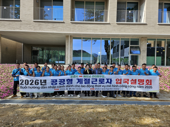 문경시가 지난 21일 농업기술센터 대강당에서 2026년 공공형 계절근로자 1차 입국자 30명을 대상으로 입국설명회를 개최하고 본격 농가 인력 지원에 나섰다.