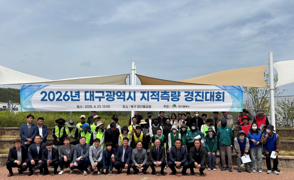 대구시가 지난 23일 북구 검단들공원에서 9개 구·군 지적공무원들이 참여하는 '2026년 지적측량 경진대회'를 개최했다. 대회 결과, 중구가 최우수상 영예를 안았으며, 북구와 동구가 각각 우수상과 장려상을 받았다.