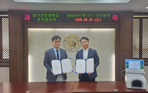 대구공업대(총장 이별나) 골프레저과가 지난 24일 맞춤형 골프장갑 제작 전문기업 아이러브핏㈜과 산학협력 강화를 위한 업무협약(MOU)을 체결했다.