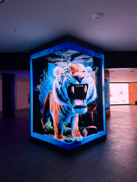전시관 입구에 들어서면 가장 먼저 ‘일연스님의 따뜻한 환영 인사’가 관람객을 맞이하며 역사 속으로의 여행을 안내한다. 이어 거대한 LED스크린에는 화면 밖으로 튀어나올 듯한 ‘3D 아나모픽 곰과 호랑이’영상이 펼쳐진다. 삼국유사 속 건국 신화의 주인공인 곰과 호랑이가 생생한 움직임의 실감형 콘텐츠로 구현돼, 입구에서부터 관람객에게 압도적인 시각적 경험과 몰입감을 선사한다.